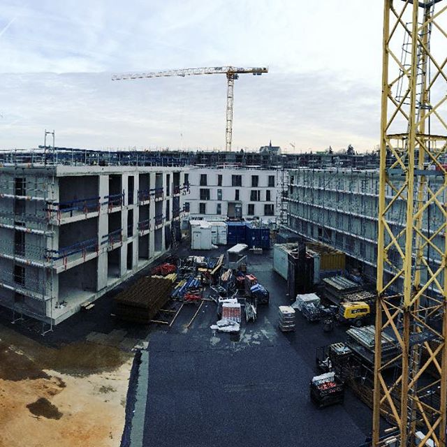 Die Rohbauarbeiten der ersten Häuser sind fertiggestellt. Die Vorbereitungsmaßnahmen zum Einbau der Fenster sind in Ausführung.