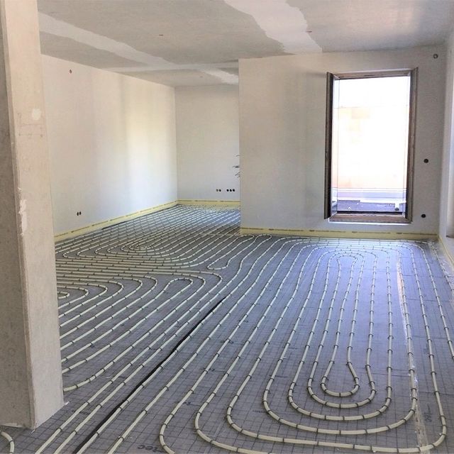 Heizschleifen für die Fußbodenheizung sind verlegt worden.